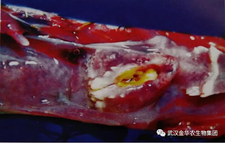 這些粘膜上的潰瘡很難除去,所以粘膜上常遺留出血裂口。潰瘡?fù)砷L而形成乾酪狀偽膜。肺部偶爾充血而氣囊呈混濁狀。