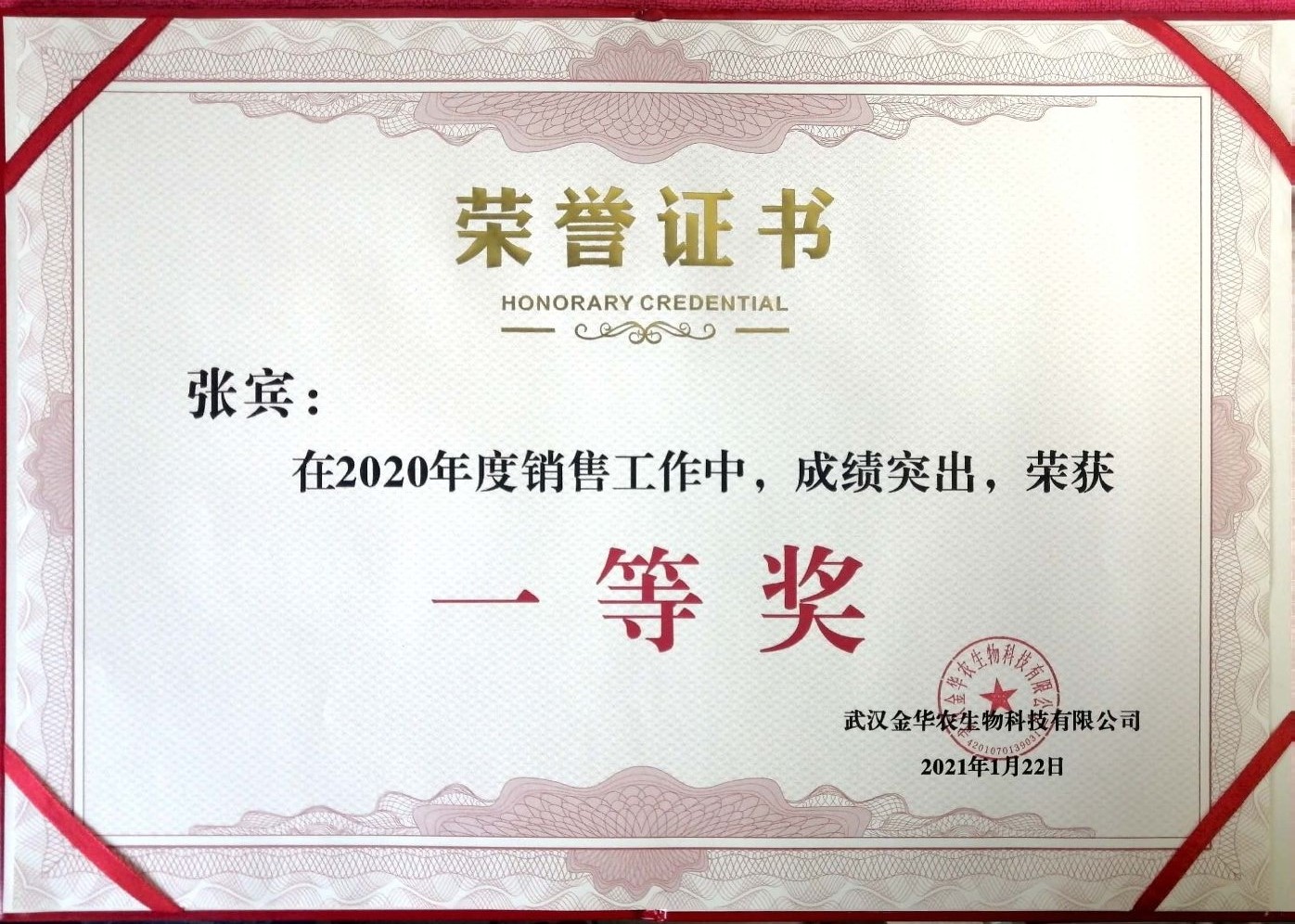 武漢金華農(nóng)生物2020年度銷售業(yè)績(jī)優(yōu)秀表彰獲獎(jiǎng)名單