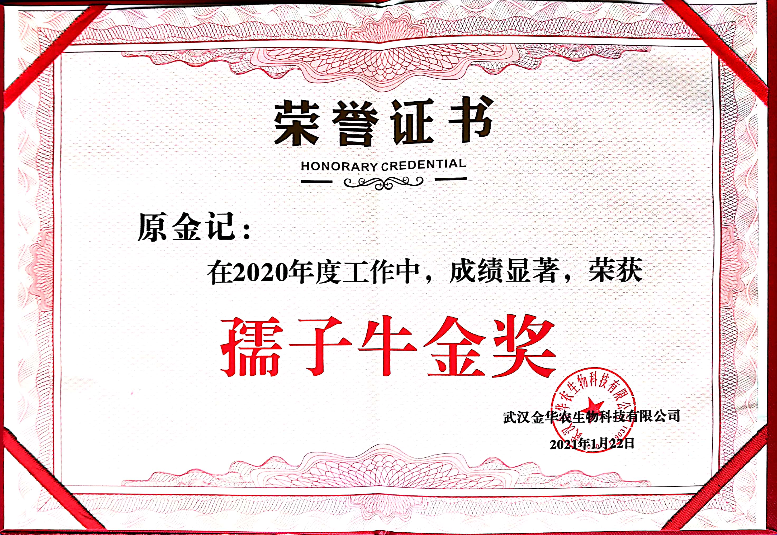 ? ? 祝賀技術(shù)部原金記老師,他在2020年積極行動(dòng),服務(wù)于一線市場(chǎng),在本次2020年度表彰活動(dòng)中榮獲“孺子金牛獎(jiǎng)”,他與各區(qū)經(jīng)理一起堅(jiān)守于一線,服務(wù)于一線,他十分優(yōu)秀,是全體武漢金華農(nóng)人學(xué)習(xí)的榜樣!2020年圓滿收官,期待他2021年繼續(xù)奮斗!為他喝彩!為他鼓掌!