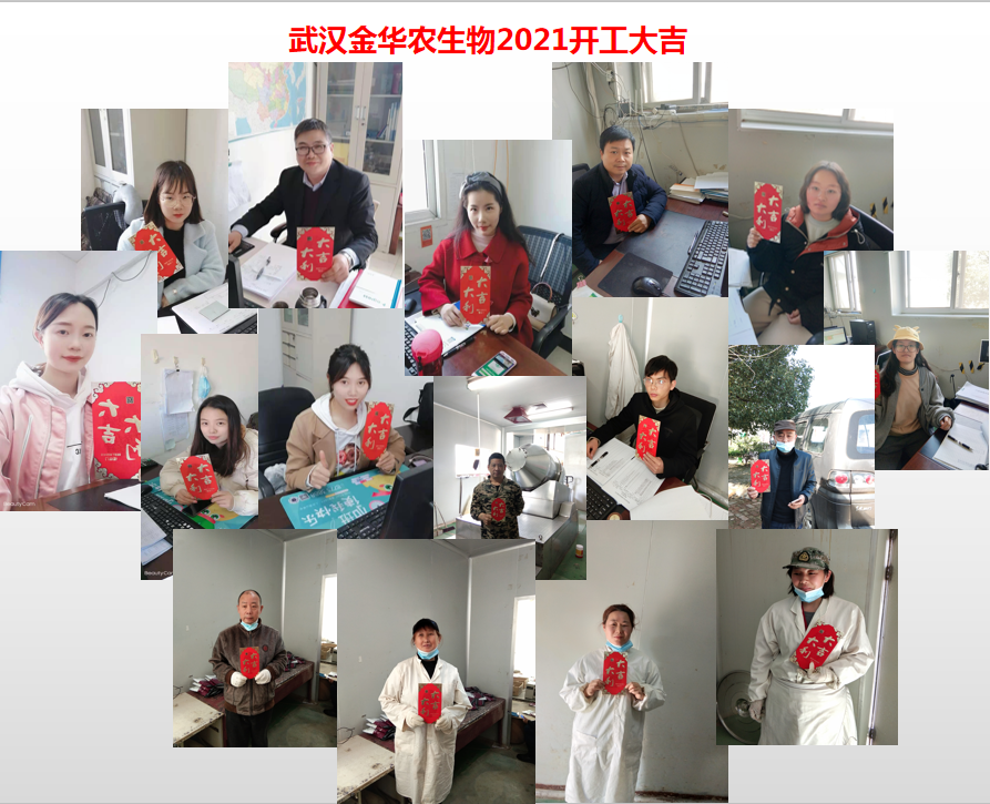 ? ? 武漢金華農(nóng)生物集團(tuán)于老歷正月初八(2021219正式上班運(yùn)營(yíng),開工營(yíng)業(yè),全體員工均有序投入工作,精神狀態(tài)飽滿,斗志昂揚(yáng),渾身充滿斗志,每個(gè)人信心十足,繼續(xù)為武漢金華農(nóng)動(dòng)保事業(yè)努力奮斗,繼續(xù)為養(yǎng)殖事業(yè)提供專業(yè)、高效、盡責(zé)的服務(wù)!