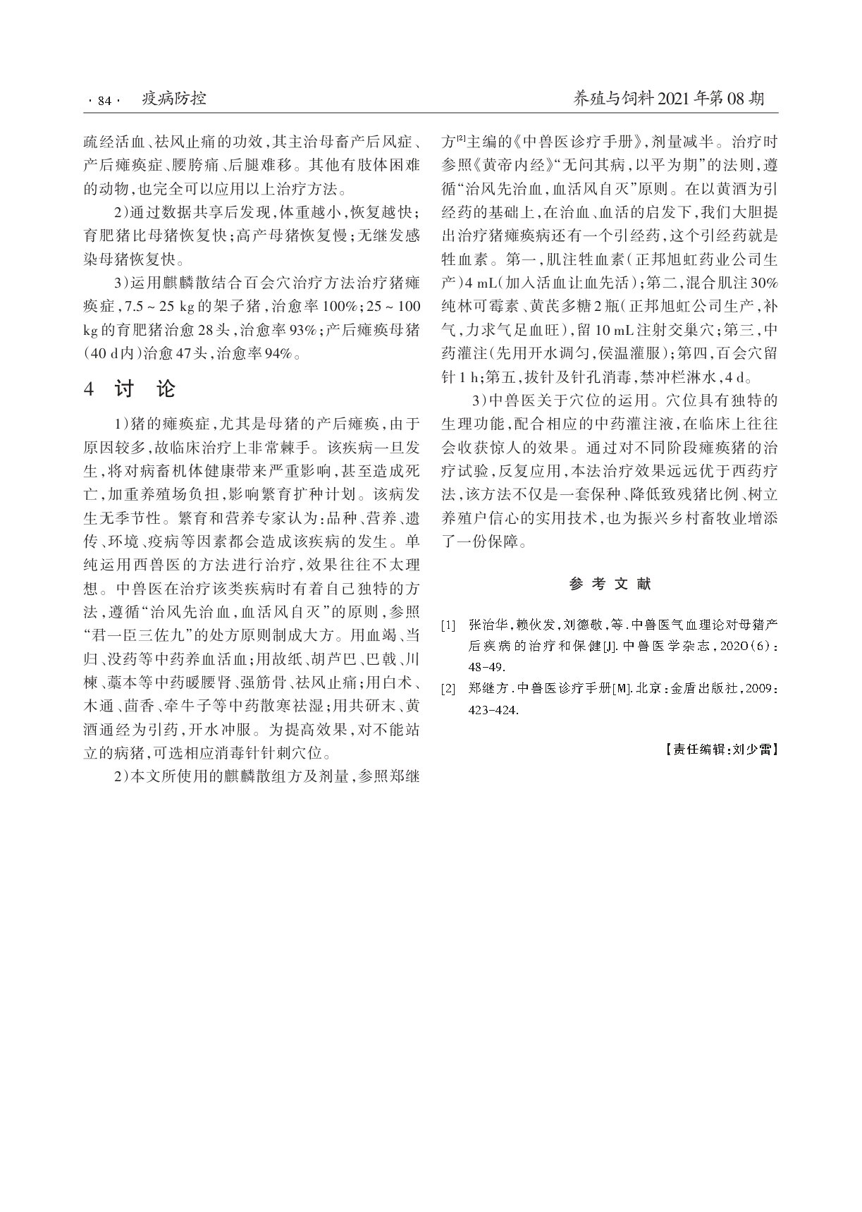 麒麟散結(jié)合針刺百會(huì)穴治療豬癱瘓癥的臨床試驗(yàn)