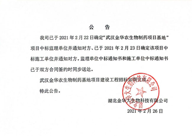 武漢金華農(nóng)生物制藥新項(xiàng)目隆重奠基開(kāi)工