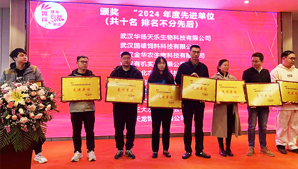 3 月 28 日,武漢市飼料協(xié)會(huì)年會(huì)暨第四屆第二次會(huì)員大會(huì)在武漢市歐亞國(guó)際會(huì)議酒店隆重舉行。武漢金華農(nóng)生物科技有限公司憑借在科技創(chuàng)新、產(chǎn)業(yè)服務(wù)及行業(yè)引領(lǐng)等方面的突出表現(xiàn),被授予2024 年度畜牧行業(yè)“先進(jìn)單位” 榮譽(yù)稱(chēng)號(hào)。湖北省農(nóng)業(yè)農(nóng)村廳畜牧獸醫(yī)處李處長(zhǎng)、武漢市農(nóng)業(yè)農(nóng)村局張局長(zhǎng)、武漢市農(nóng)業(yè)農(nóng)村局余處長(zhǎng)出席活動(dòng)并為獲獎(jiǎng)單位頒獎(jiǎng)。武漢金華農(nóng)生物集團(tuán)富勝董事長(zhǎng)出席活動(dòng)并致辭。