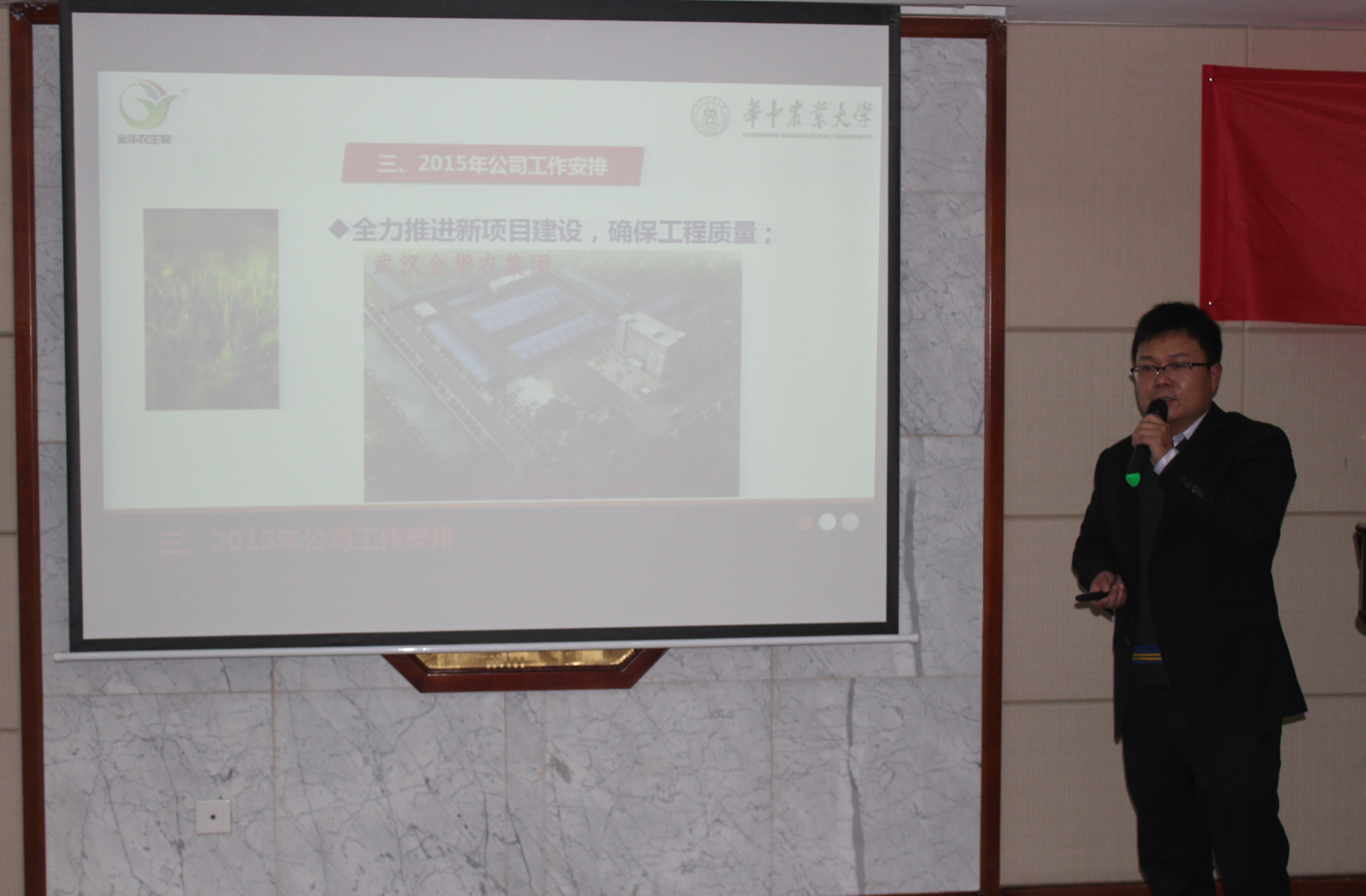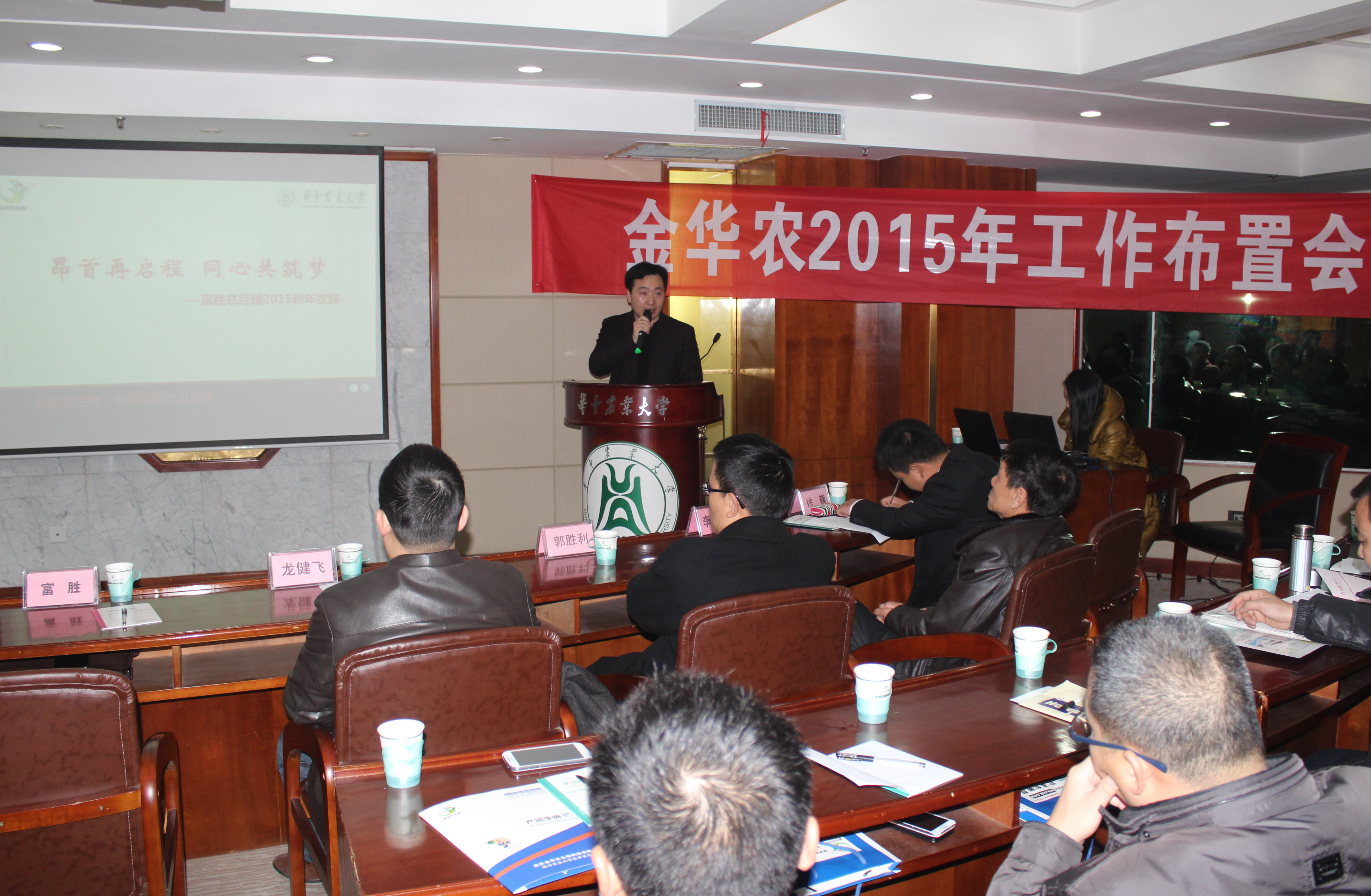 首先,徐總就2014年公司所取得的成績(jī)與進(jìn)步、公司新項(xiàng)目的推進(jìn)速度、公司深化改革后內(nèi)部至外圍的發(fā)展變化、公司年度財(cái)務(wù)結(jié)算與銷售業(yè)績(jī),向大家作了詳細(xì)報(bào)告,肯定了全體金華農(nóng)人的努力付出的結(jié)果,超額完成了年初設(shè)定的銷售目標(biāo)。同時(shí)向大家講述了公司2015年將有將全面深化改革,快速推進(jìn)新項(xiàng)目的建設(shè)與運(yùn)營(yíng),創(chuàng)新型的科技產(chǎn)品也將全面上市銷售。