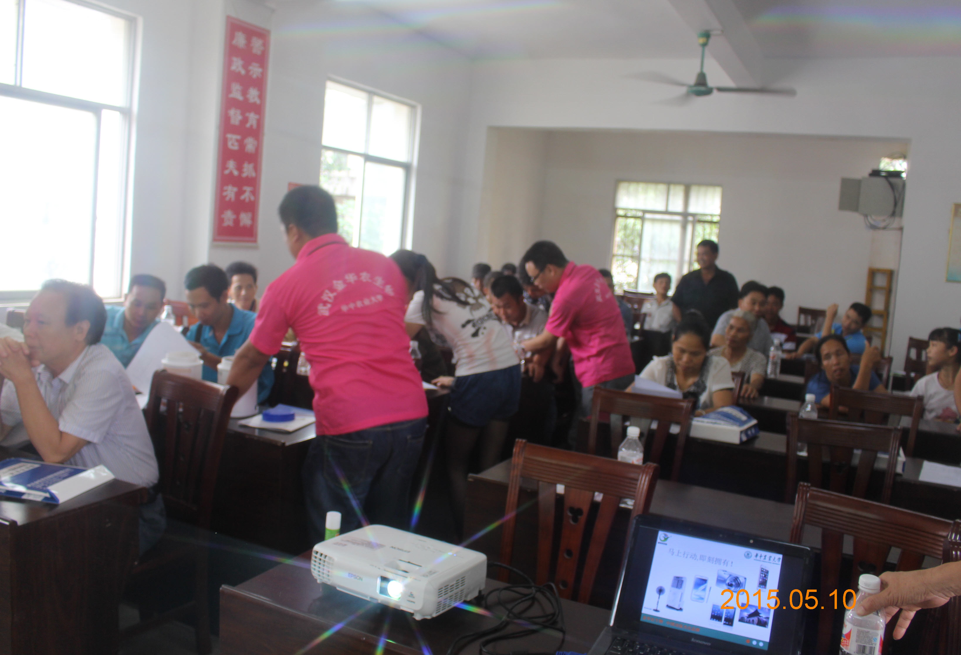 養(yǎng)豬戶專心聽(tīng)取“華中農(nóng)業(yè)大學(xué)專家教授”講課