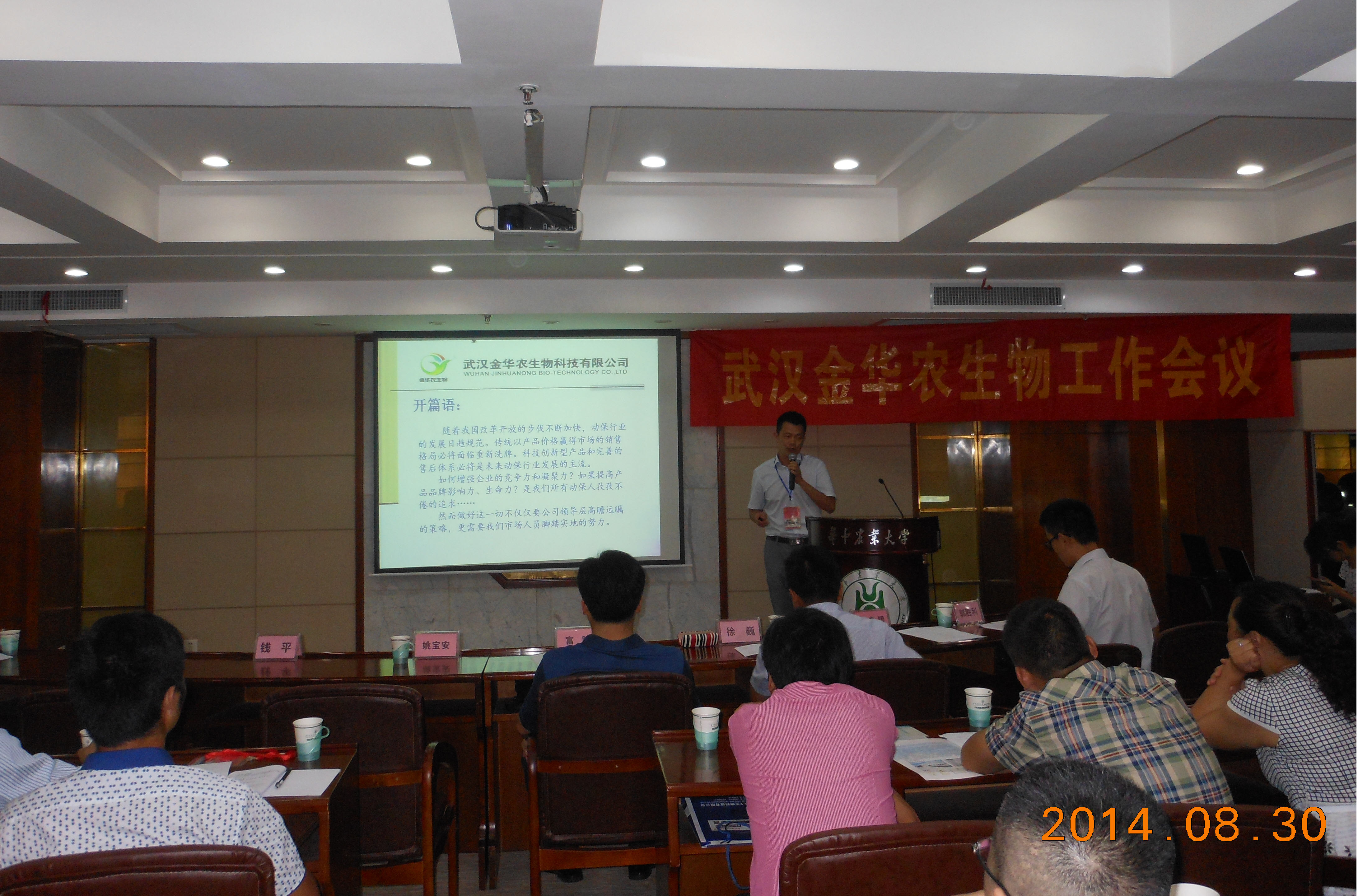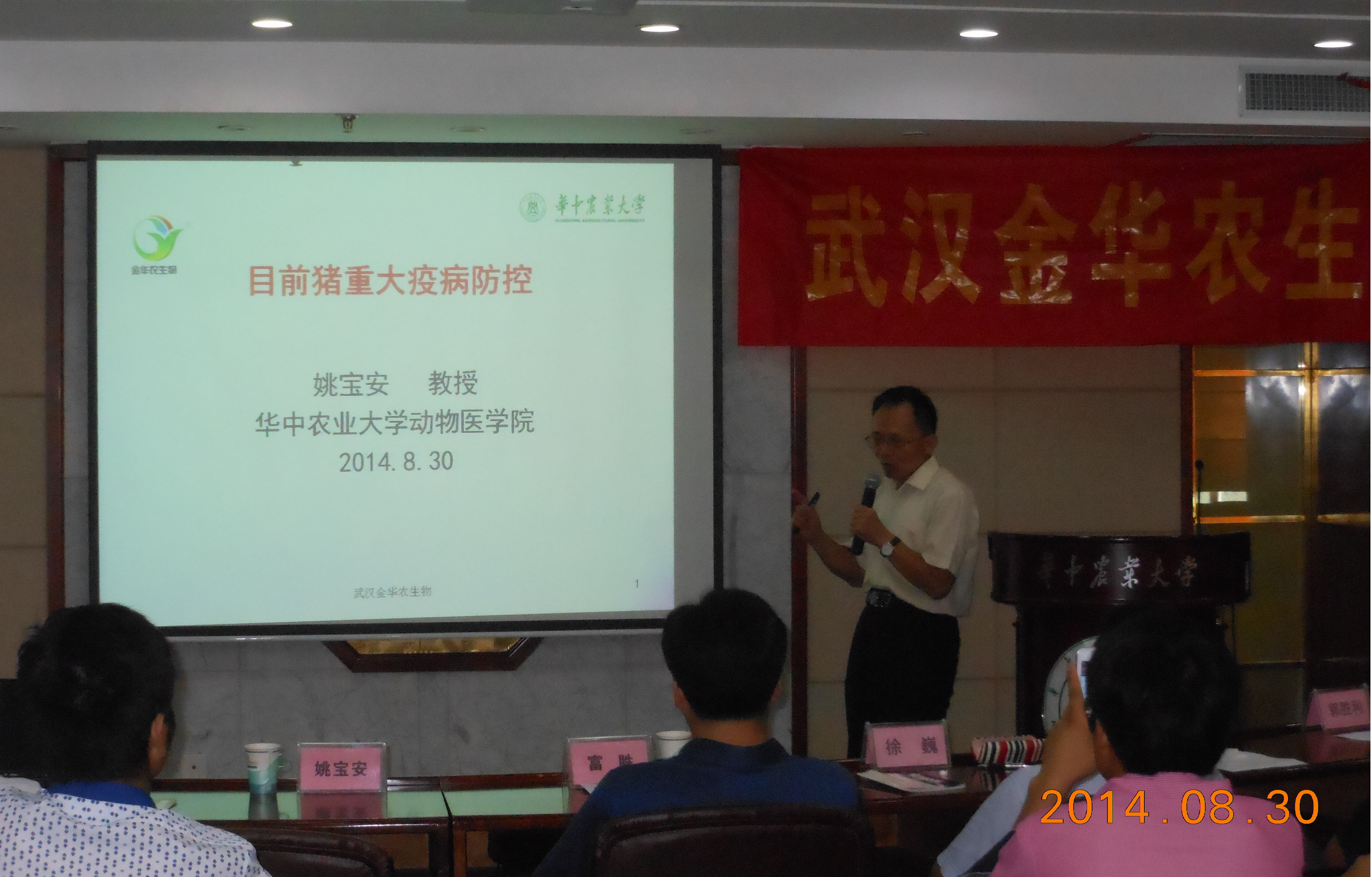 8月29日-31日,武漢金華農(nóng)生物第三季度市場銷售工作及豬病培訓會議在華中農(nóng)業(yè)大學勝利召開,主題內(nèi)容涉及季度銷售工作總結(jié)、各大區(qū)業(yè)績匯報、新產(chǎn)品研發(fā)定位、豬常見病和易發(fā)病的防控與治療。
