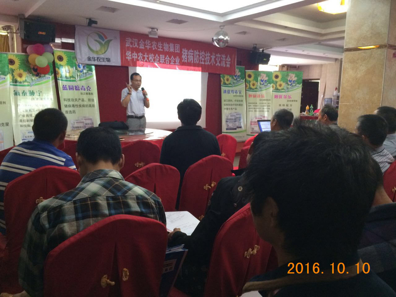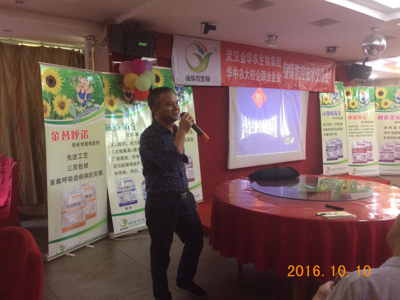 喜訊:2016年10月10日,武漢金華農(nóng)生物科技有限公司“秋冬季常見易發(fā)豬病研討會”在福建南平市南山鎮(zhèn)勝利召開,圓滿成功,收獲滿滿!公司常務副總經(jīng)理徐巍博士出席本次會議,公司技術部吳志良老師領銜主講,南平大區(qū)張?zhí)砹亟?jīng)理策劃組織。公司“附優(yōu)金樂”、“腫痢速抗”、“藍圓瘟毒克”、“金替呼諾”、“氟泰肺寧”、“弓球痢康”、“金普西林”、“華農(nóng)樂健”、“伊苯佳”等產(chǎn)品,在南平市場都深受廣大養(yǎng)殖戶的歡迎與信賴。本次會議現(xiàn)場氣氛熱烈、反響很好,會議共收到現(xiàn)金5萬多元,預計后期跟蹤拜訪總銷量達20多萬元!祝福武漢金華農(nóng)再創(chuàng)輝煌!全體武漢金華農(nóng)人加油!
