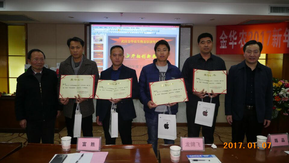 2017年1月7日,武漢金華農(nóng)公司秉承一貫“惜才、愛才、培養(yǎng)、拔高、貢獻”的人才理念,對全年市場優(yōu)秀工作者進行了大力表彰,各路市場精英迎來了屬于他們的肯定和榮耀!公司行政、市場近百人團隊分享了他們的喜悅與自豪,既為市場精英們歡呼鼓掌,也為自己的努力而叫好,新的一年,讓我們向行業(yè)標桿們看齊,勇往直前,爭當?shù)谝唬?/span>