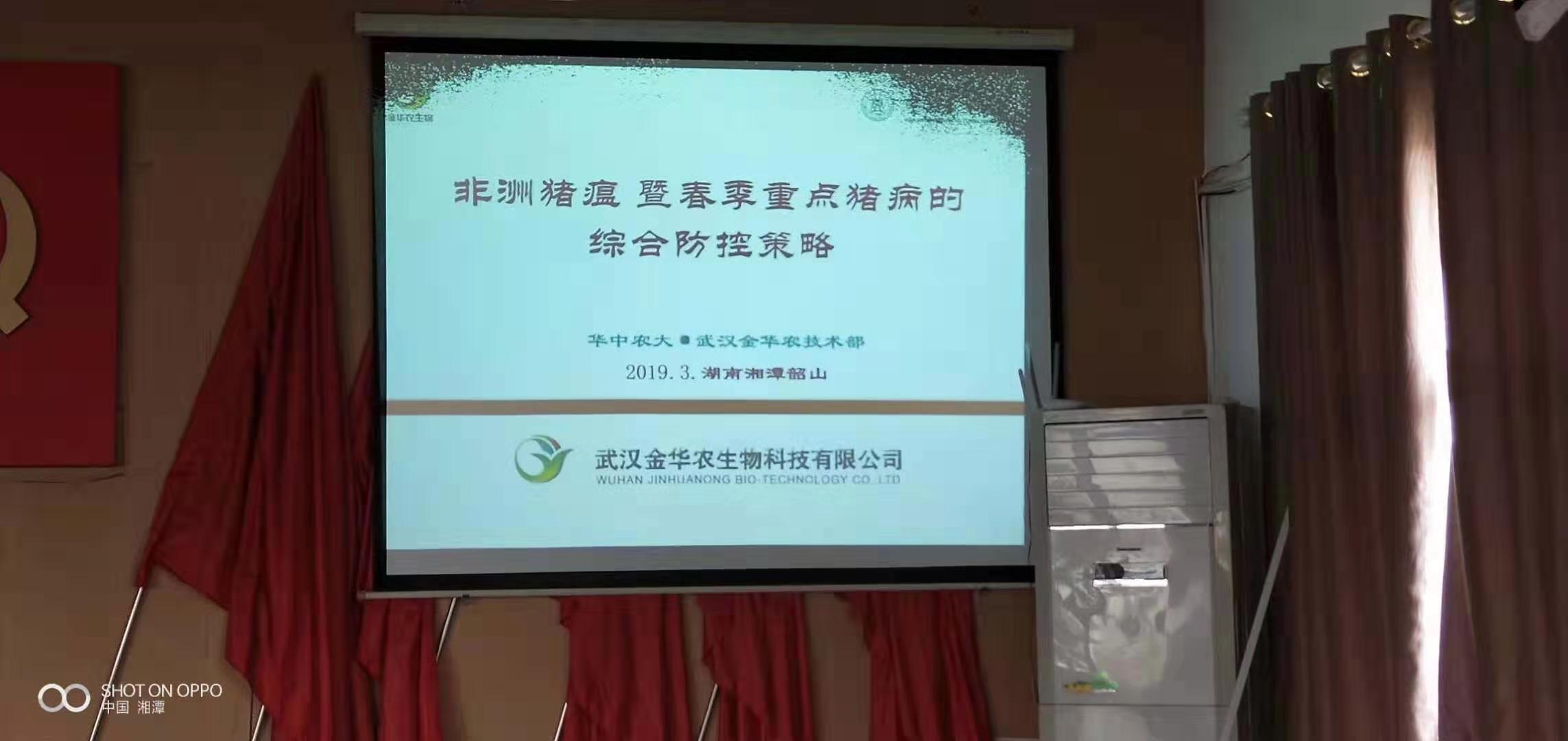 ? ?本站訊(小麗、馬楠)2019年3月11日,武漢金華農(nóng)生物“春季豬病防控暨非洲豬瘟研討會”在湖南韶山銀田鎮(zhèn)政府會議室勝利召開,公司運(yùn)營部郭昌盛老師出席會議,技術(shù)部吳志良老師主講,技術(shù)部原金記老師跟蹤拜訪,湖南大區(qū)經(jīng)理胡簇經(jīng)理全權(quán)組織與策劃!