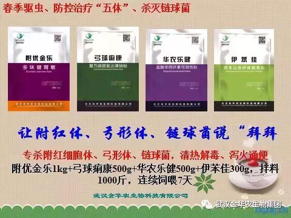 會(huì)議主題1:春季驅(qū)蟲,防控五體“附紅體、弓形體、支原體、衣原體、螺旋體”,殺滅一細(xì)菌“鏈球菌”很關(guān)鍵,豬群出現(xiàn),返情,配不上種,受孕率低,毛孔出血,眼屎,淚斑、尿黃,糞便干燥,皮毛粗糙、雜亂,食欲不振,喝臟水,流產(chǎn),死胎:附優(yōu)金樂(lè)1kg+華農(nóng)樂(lè)健500g+弓球痢康500g+伊苯佳300g,拌料1000斤,連續(xù)飼喂7-10天,臨床療效,治療效果,非常顯著。