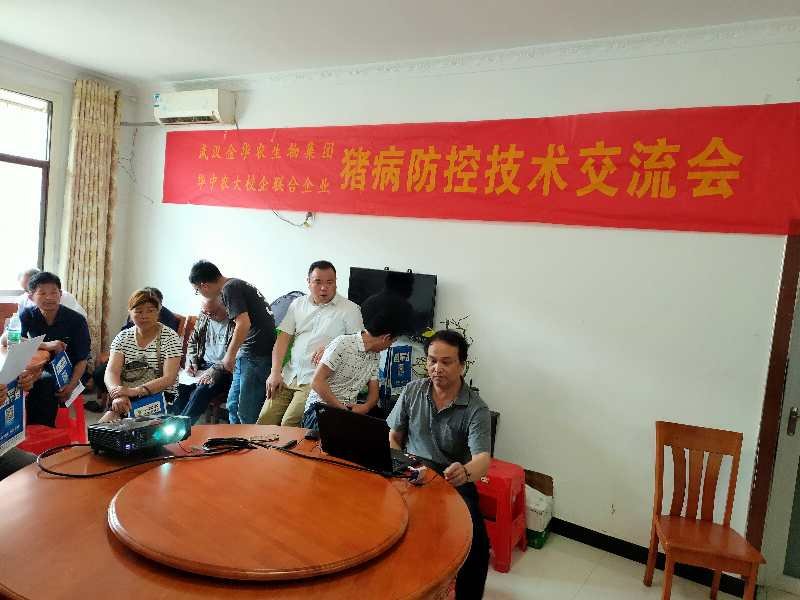 2019年5月27日,武漢金華農(nóng)生物集團應湖南衡陽畜牧局主管單位邀請,在湖南衡陽衡東縣成功舉辦豬病圓桌交流會議,與會養(yǎng)豬戶30家,反饋效果明顯,現(xiàn)場訂貨積極,會議氣氛友好而熱烈。湖南衡陽衡東縣戰(zhàn)略合作伙伴彭總出席參加本次會議。