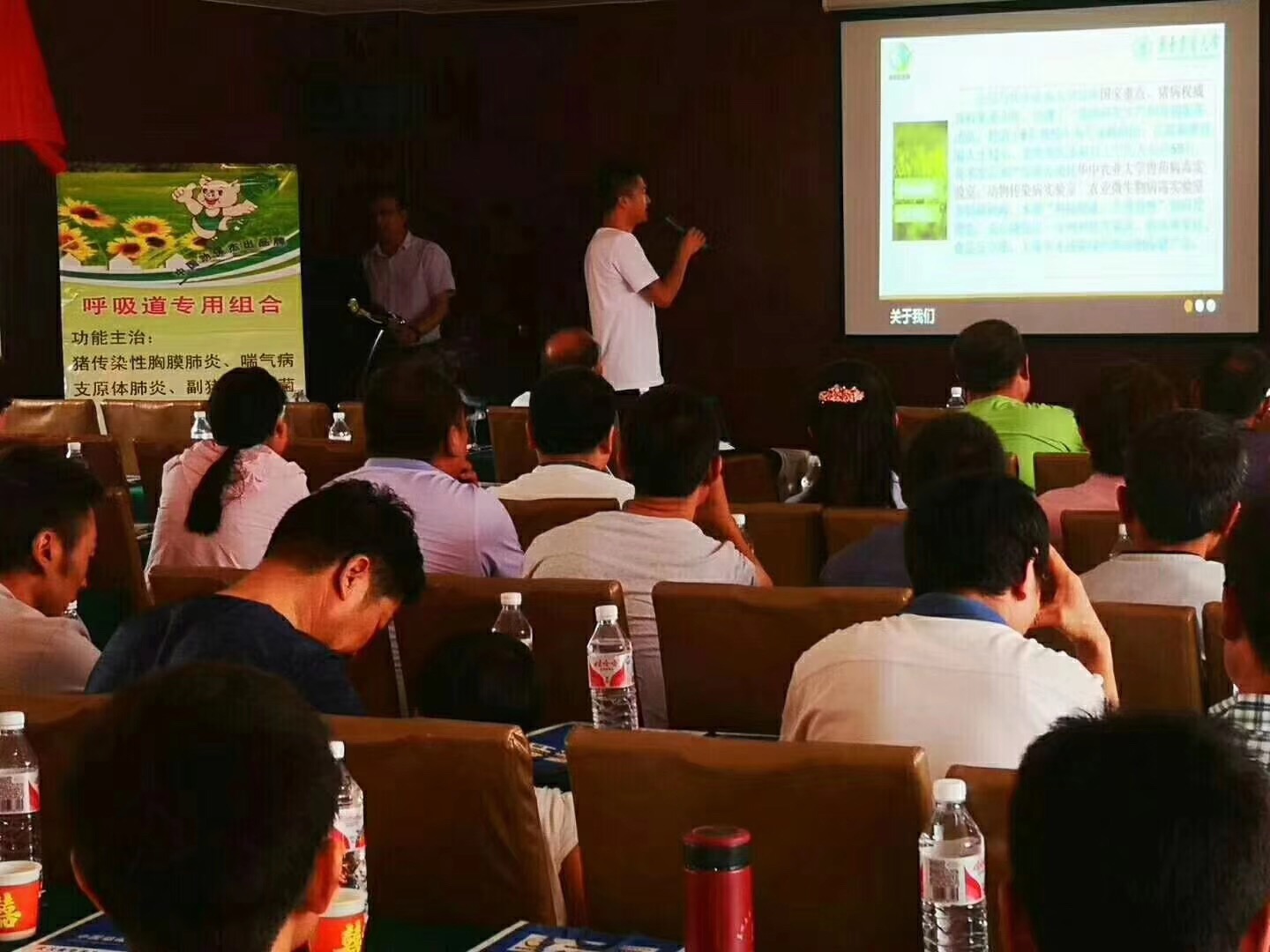 7月31號(hào),武漢金華農(nóng)生物科技有限公司在甘肅省平?jīng)霭从?jì)劃舉辦“夏季豬病技術(shù)交流會(huì)”,會(huì)議非常成功,取得巨大成績,于8月1日正式圓滿落幕。本次會(huì)議由甘肅省戰(zhàn)略合作伙伴“恒利牧業(yè)”楊總負(fù)責(zé)組織和策劃,公司技術(shù)部吳老師主講,甘肅大區(qū)經(jīng)理?xiàng)罱?jīng)理主持會(huì)議。
