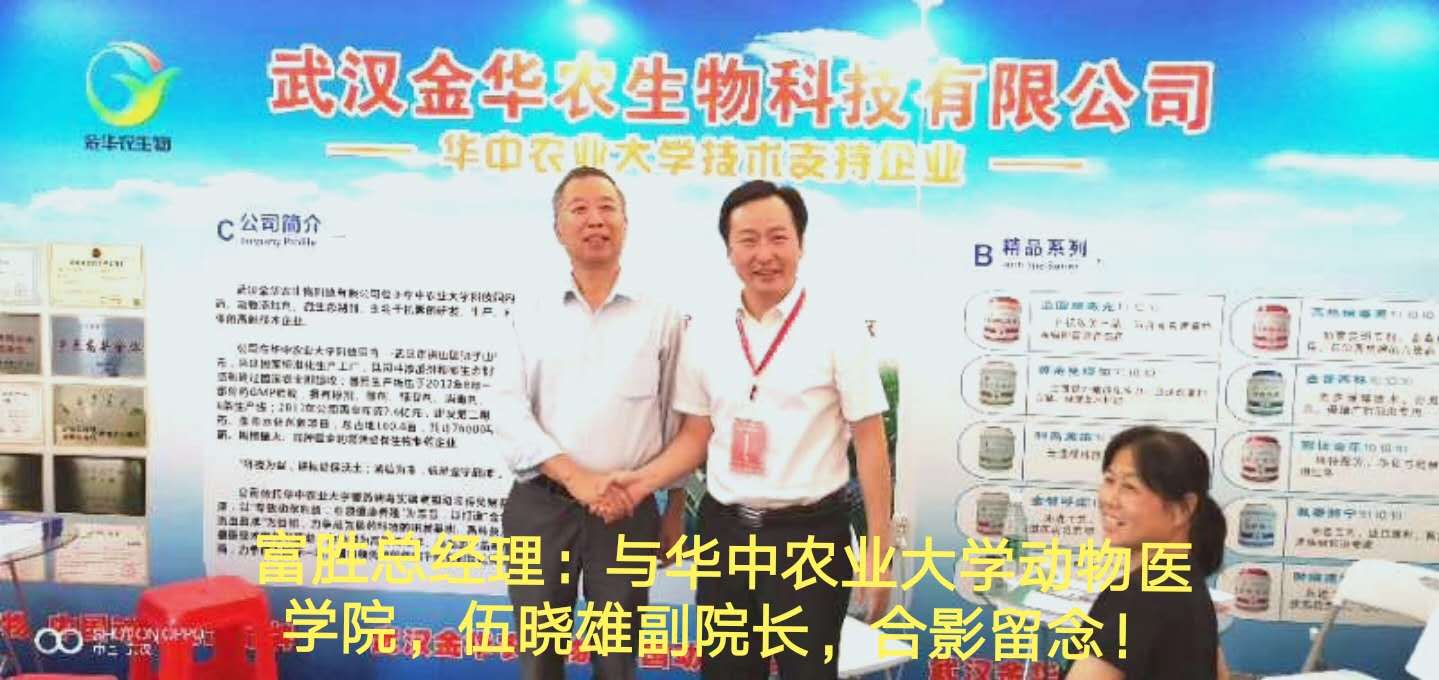 武漢金華農(nóng)生物集團(tuán)應(yīng)邀出席并參加華中農(nóng)業(yè)大學(xué)120周年校慶,及校友企業(yè)品牌展示日活動(dòng)!公司領(lǐng)導(dǎo)富勝總裁親自出席,并作為嘉賓代表致辭!武漢金華農(nóng)生物作為“湖北省優(yōu)秀動(dòng)保企業(yè)”、“大學(xué)校企合作典范企業(yè)”、“國家科技創(chuàng)新企業(yè)”、“湖北省農(nóng)業(yè)示范企業(yè)”,過硬質(zhì)量,杰出品牌,顯著療效,良好口碑,受到畜牧行業(yè)主管領(lǐng)導(dǎo)、業(yè)內(nèi)同仁與廣大養(yǎng)殖戶朋友一致認(rèn)可與高度贊美!