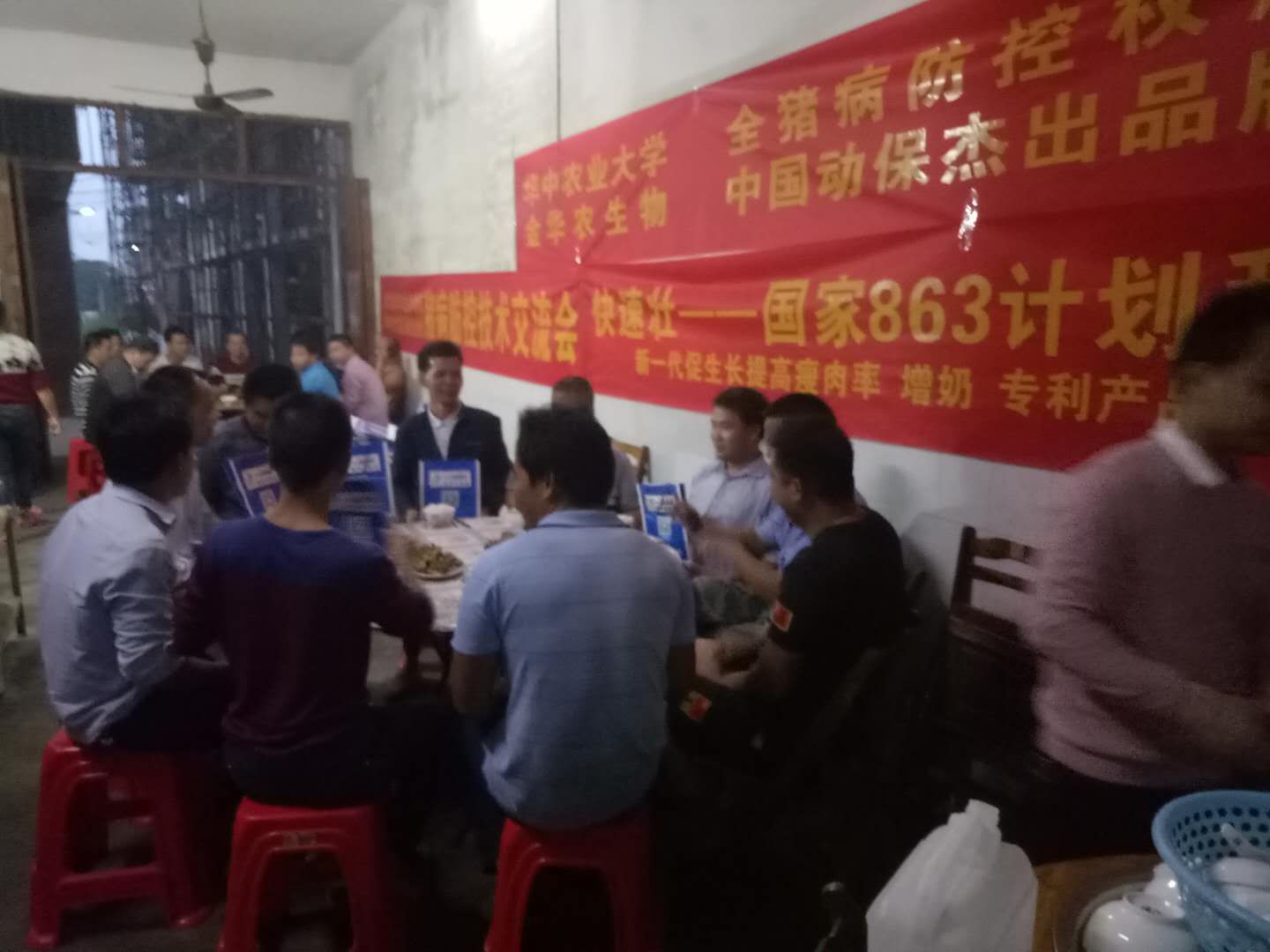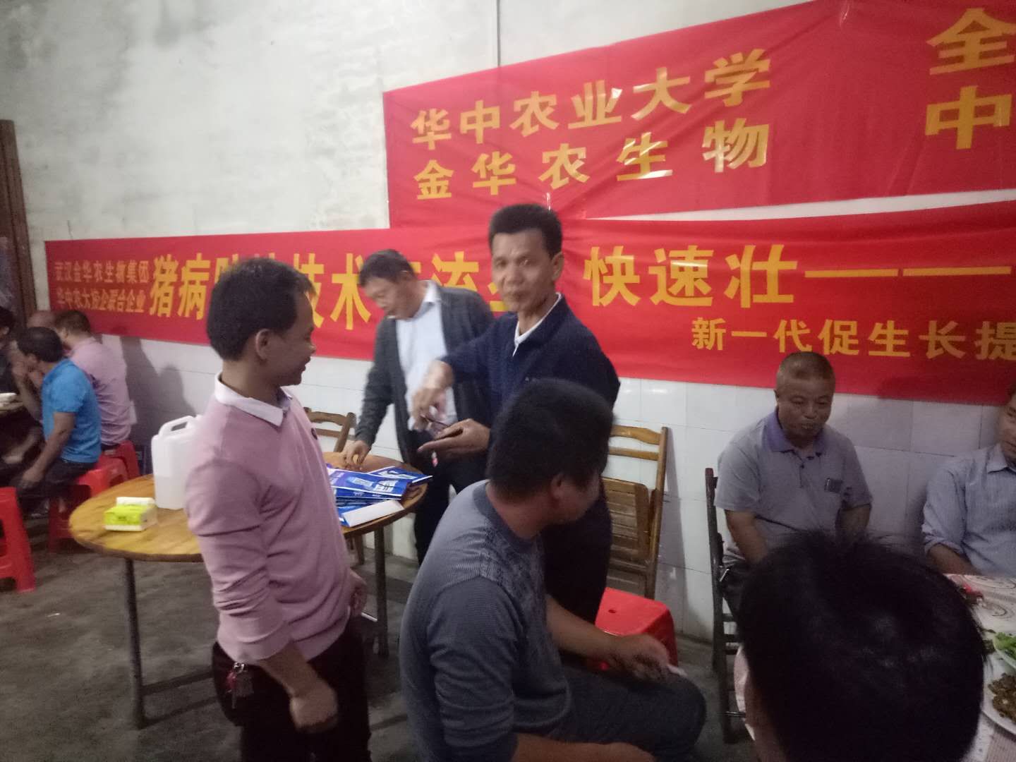 2018年10月16~18日,武漢金華農(nóng)生物集團(tuán)“廣西專屬圓桌會(huì)議”連續(xù)3場(chǎng)在廣西玉林博白地區(qū)拉開帷幕,此次連續(xù)3場(chǎng)圓桌會(huì)議,形式多樣,內(nèi)容新穎,學(xué)習(xí)輕松,接地氣交流,養(yǎng)豬戶效果反饋明顯。公司廣西辦事處龐總負(fù)責(zé)組織、策劃和宣傳,技術(shù)部原老師主講和技術(shù)跟蹤服務(wù),區(qū)域銷售陸經(jīng)理、劉經(jīng)理、鄧經(jīng)理參加本次會(huì)議,并負(fù)責(zé)區(qū)域銷售計(jì)劃的落實(shí)。第一場(chǎng)會(huì)議聽課豬場(chǎng)老板50多人,會(huì)議達(dá)到預(yù)期目的,豬病知識(shí)授課圓滿,養(yǎng)豬戶學(xué)習(xí)積極認(rèn)真。