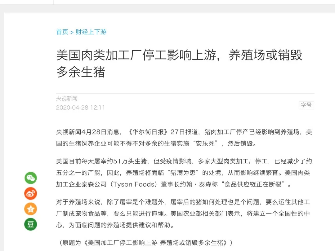 多國肉類加工廠因疫情停工,市場擔(dān)憂全球肉類會出現(xiàn)供應(yīng)不足