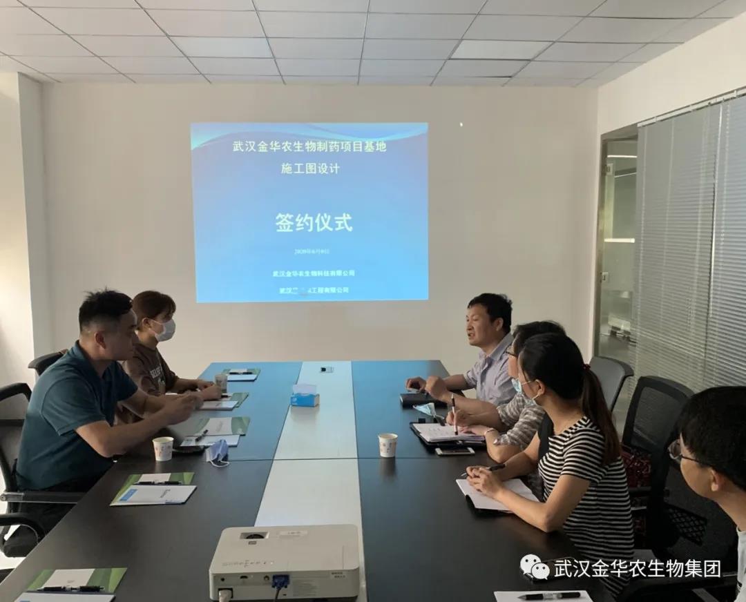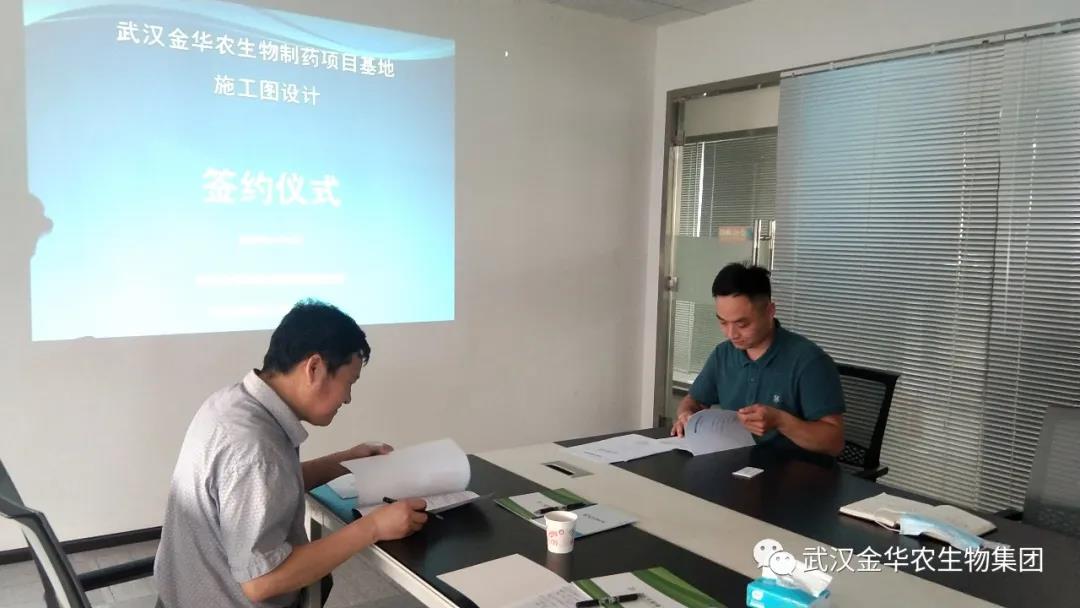 6月9日,武漢金華農(nóng)生物制藥投資3億元新項目基地施工設(shè)計簽約儀式在光谷生物城舉行。公司項目總監(jiān)黃凡、企劃部經(jīng)理趙方佳、合作方首席設(shè)計師團隊共同出席此次簽約儀式。